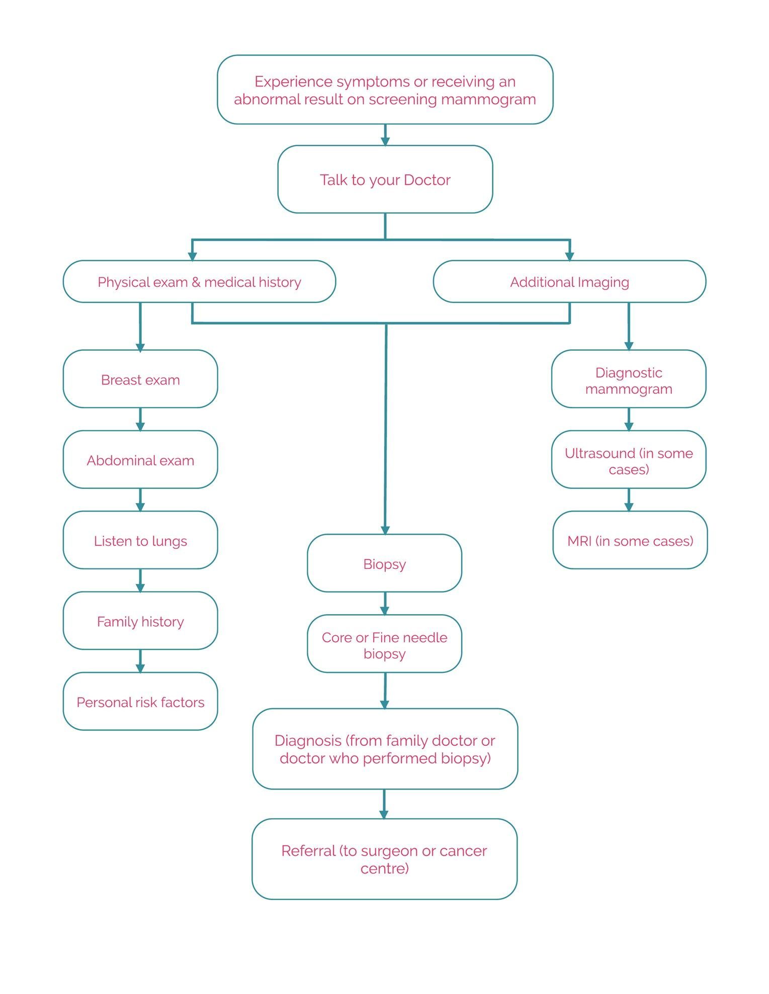 If you have noticed changes to your breast or if your mammogram results require further tests, the first thing you will do is speak with your doctor. During this appointment, your doctor may give you a full physical exam and review your medical history.